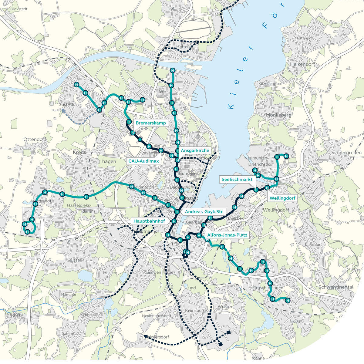 Det hele sker i regi af Gemeindeverkehrsfinanzierungsgesetz (GVFG), hvor Kiel har nu fået blivende tilsagn om støtte til den første etape.