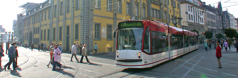Topbillede er fra den tyske by Erfurt, der har tre gågader med letbaner. Foto 2005